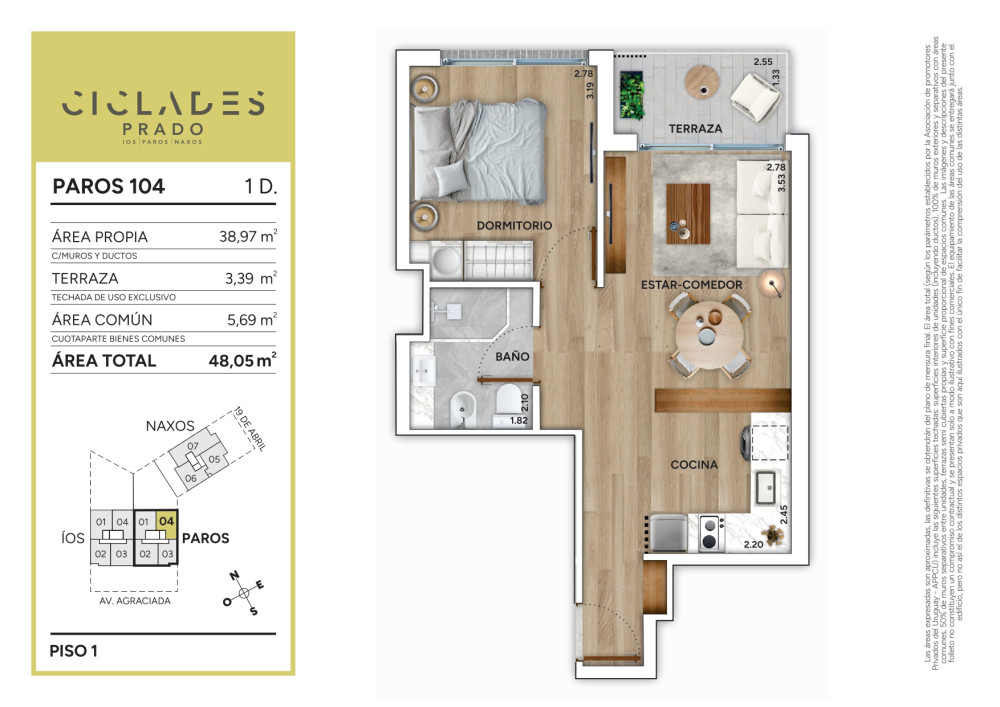 Actualmente en construcción, "Cíclades Prado" tiene prevista su entrega para junio de 2026, lo que lo convierte en una excelente oportunidad tanto para vivir como para invertir en una zona en constante valorización. El proyecto se ampara bajo los beneficios de la Ley de Vivienda Promovida.