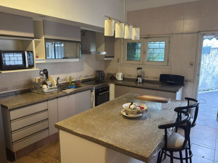 En planta baja living-comedor con hogar con ventanal al fondo. Amplia cocina semi equipada con isla y salida a fondo. El fondo cuenta con barbacoa, baño completo y kitchenette.