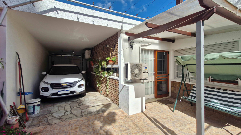 Padrón único en una planta, excelente estado. Living amplio, cocina americana integrada a estar-comedor con hogar, 2 baños nuevos completos y lavadero. 3 Dormitorios con placares, más escritorio o 4to dormitorio. Gran galpón de 52m2 con parrillero. Entrada lateral vehicular con cocheras y pasaje al fondo. Portones automatizados y jardín con perimetrales.