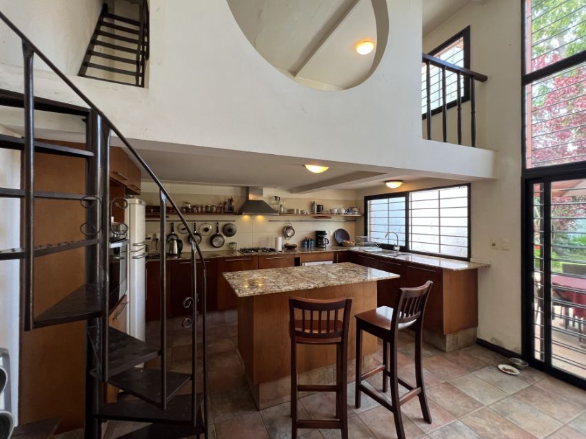 Amplia cocina con comedor diario, equipada y con estufa a leña, con salida directa al fondo.